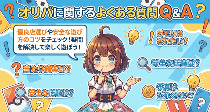 オリパについてよくある疑問をまとめておきます。オリパ優良店選びや安全な遊び方のイメージをより具体的にするための補足として読んでみてください。